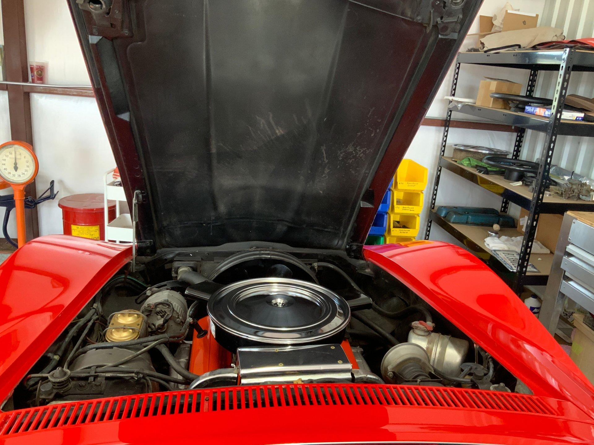 This striking Mille Miglia Red 1972 Corvette Stingray Convertible is a beautiful example of these classic chromed chariots. Lift the hood and you'll find the numbers matching 350 V8 nestled in a well-detailed engine bay. Additional features include power 4-wheel disc brakes, a Muncie 4-speed manual transmission, correct custom interior trim with black leather upholstery (404), auxiliary hardtop, a newer AM/FM/Cassette stereo, and new B.F. Goodrich Radial T/A's (225/70R15) wrapped around classic and correct rally wheels. Our crimson cruiser runs and drives like a Stingray should while attracting more attention than Lady Godiva.