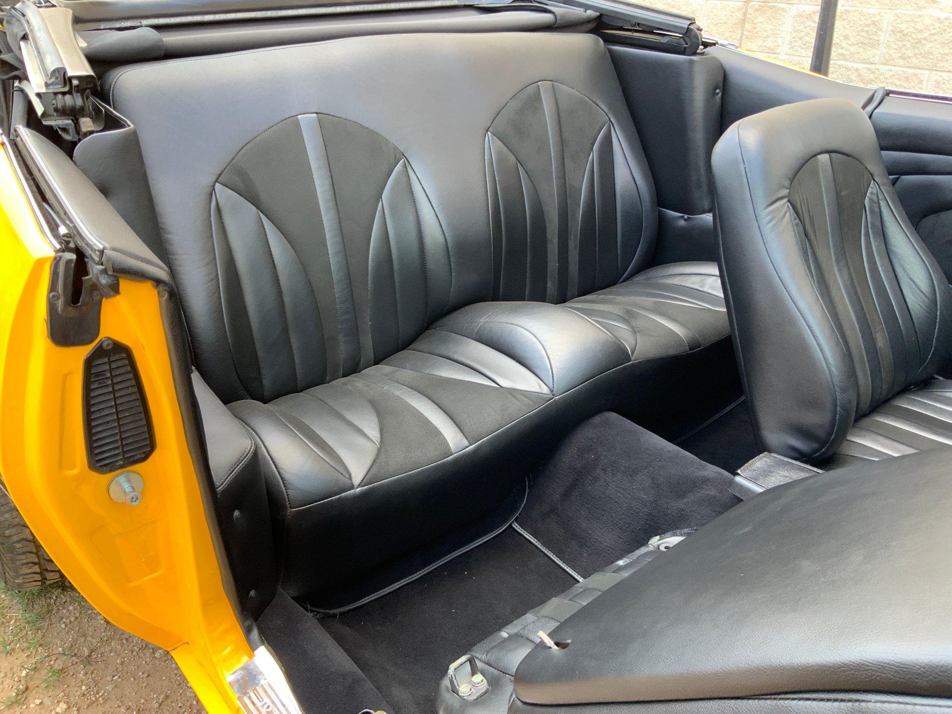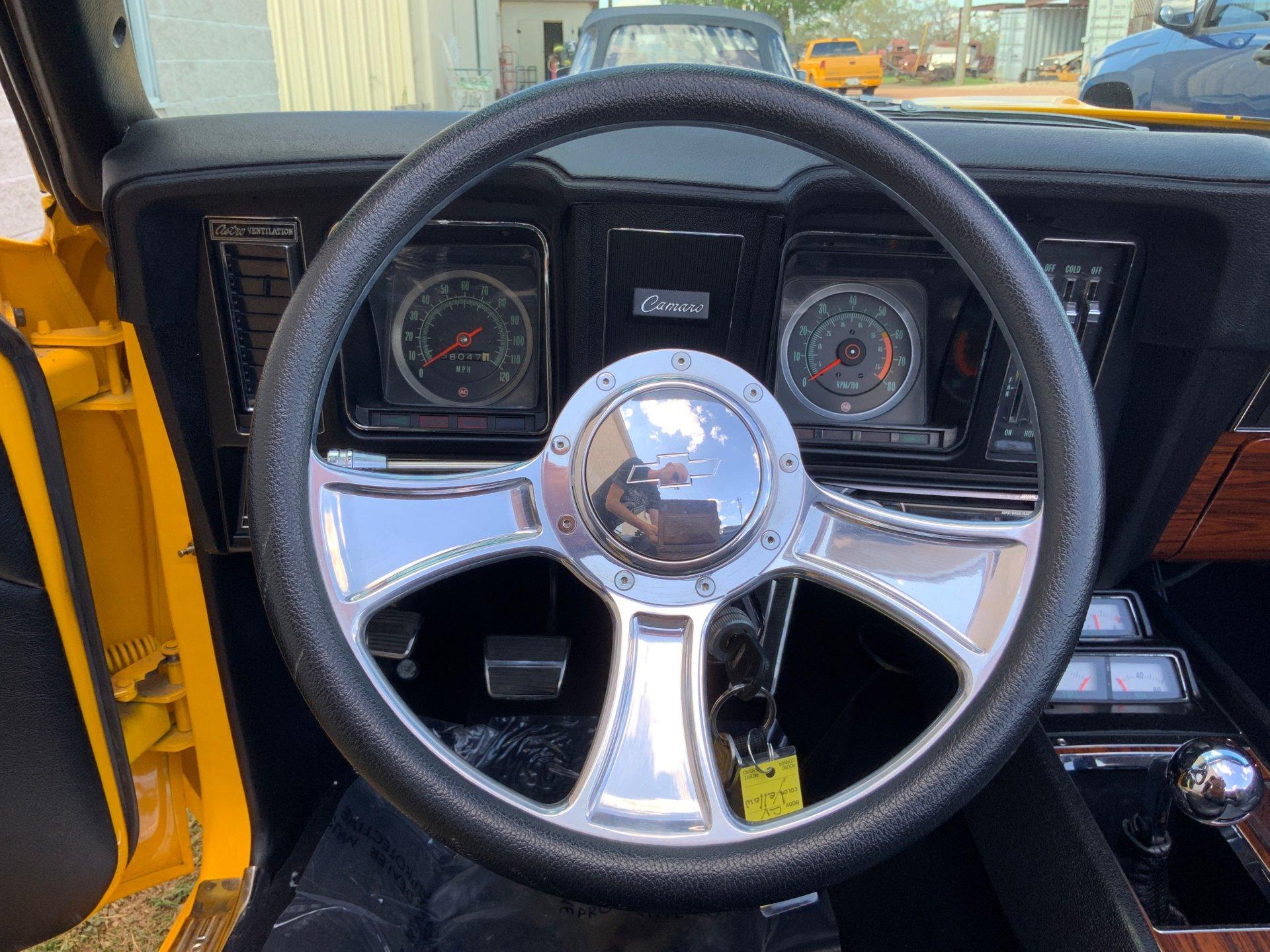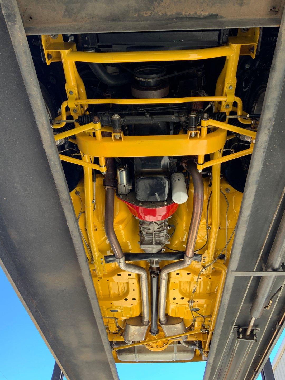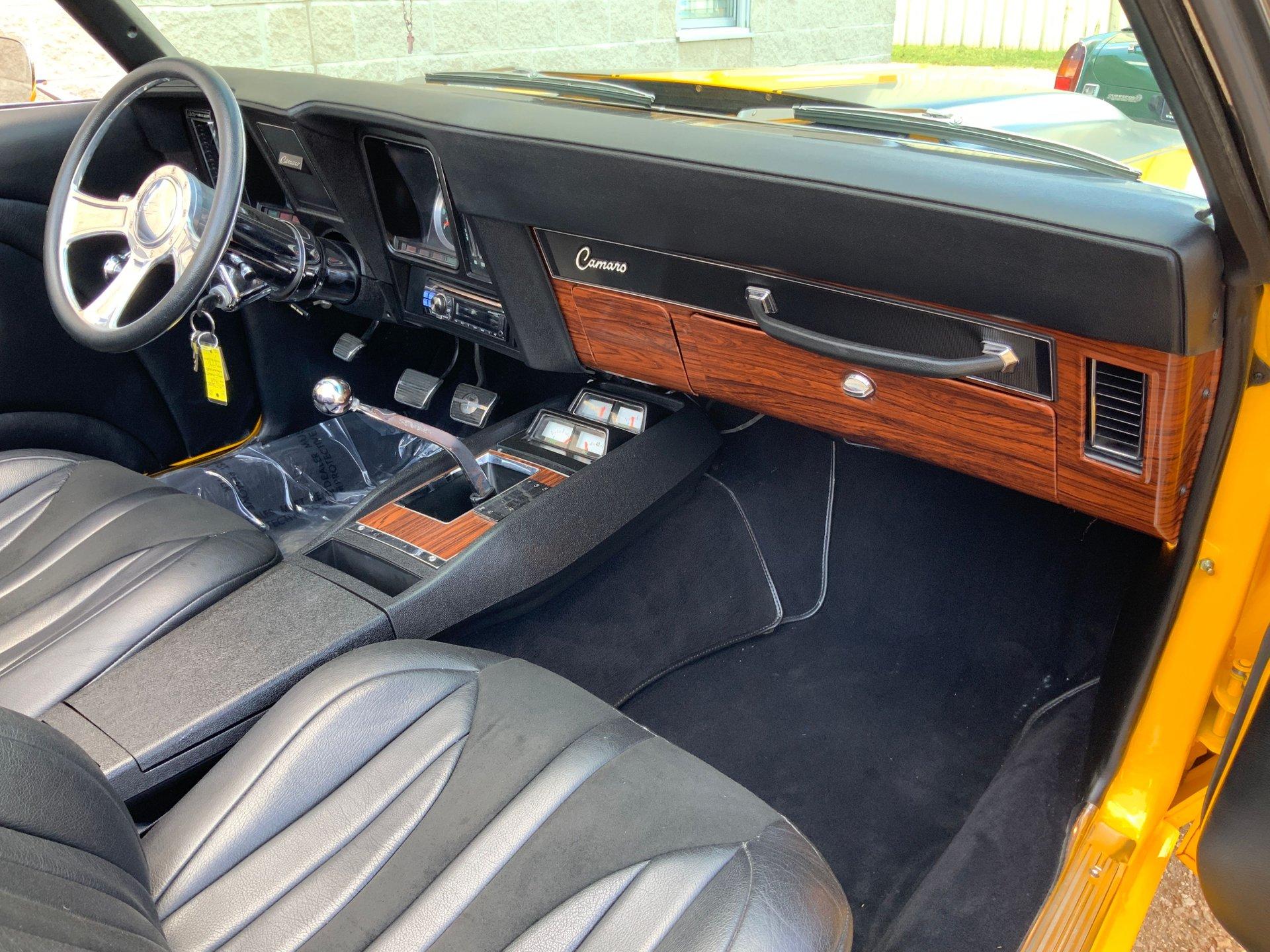 This wicked 1969 Camaro Convertible definitely leans toward the stoplight stormer type, but it does so with vastly increased performance and safety. Lift the functional steel "super scoop" hood and you'll be greeted by a ferocious GMPP 502 V8 that's sporting forged internals, a hydraulic roller cam, a Holley carburetor, a GMPP aluminum intake manifold, aluminum heads, and a Mallory billet distributor. Additional features include a tubular steel front subframe with coilovers and power rack and pinion steering, power 4-wheel disc brakes, 5-speed manual transmission with HD scatter shield, 4-link rear end with coilovers, front and rear stabilizer bars, tubular steel subframe connectors, custom interior, tilt steering column with custom wheel, console with gauges, an Alpine AM/FM/CD audio system, and Billet Specialties alloy wheels wearing aggressive rubber (245/45ZR17 F, 275/40ZR18 R). This beast takes the Camaro nickname "the Hugger", as in road hugger, seriously and one look at the chassis in the images provided explains why.