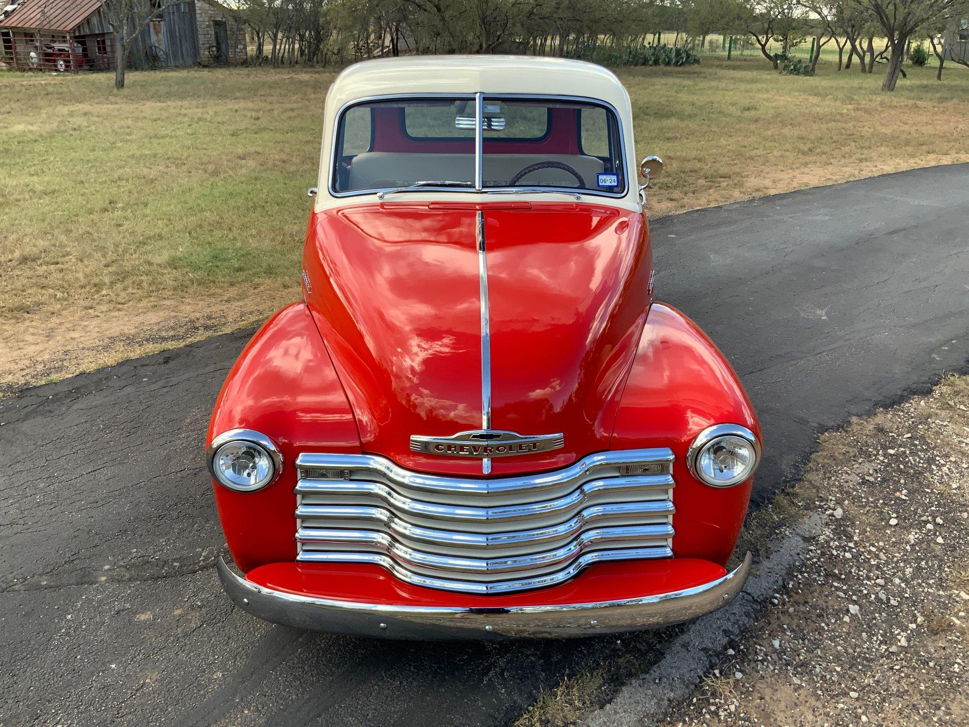 This beautiful 1951 Chevrolet 3100 5-Window is an excellent example of a shapely classic that's been upgraded for increased safety, comfort, and performance. Lift the voluptuous hood and you'll be greeted by a fuel injected Chevrolet 350 V8 that's been fortified with EZ-EFI, an Edelbrock AirGap aluminum intake manifold, headers that feed an efficient dual exhaust system, HEI, and an aluminum radiator with custom shroud and electric fan. Additional features include a Mustang II-type front clip, power rack and pinion steering, power 4-wheel disc brakes, air conditioning, 700R4 4-speed automatic transmission with O/D and Lokar shifter, custom interior with cowhide inserts, chrome tilt steering column with wood wheel, Classic Instruments gauges, AM/FM/MP3 stereo, fresh wood bed kit, and 215/70R15 tires wrapped around steel wheels with chrome "bullet" caps and beauty rings. This stunner is beautiful both aesthetically and mechanically and top to bottom, as can clearly be seen in the images provided.