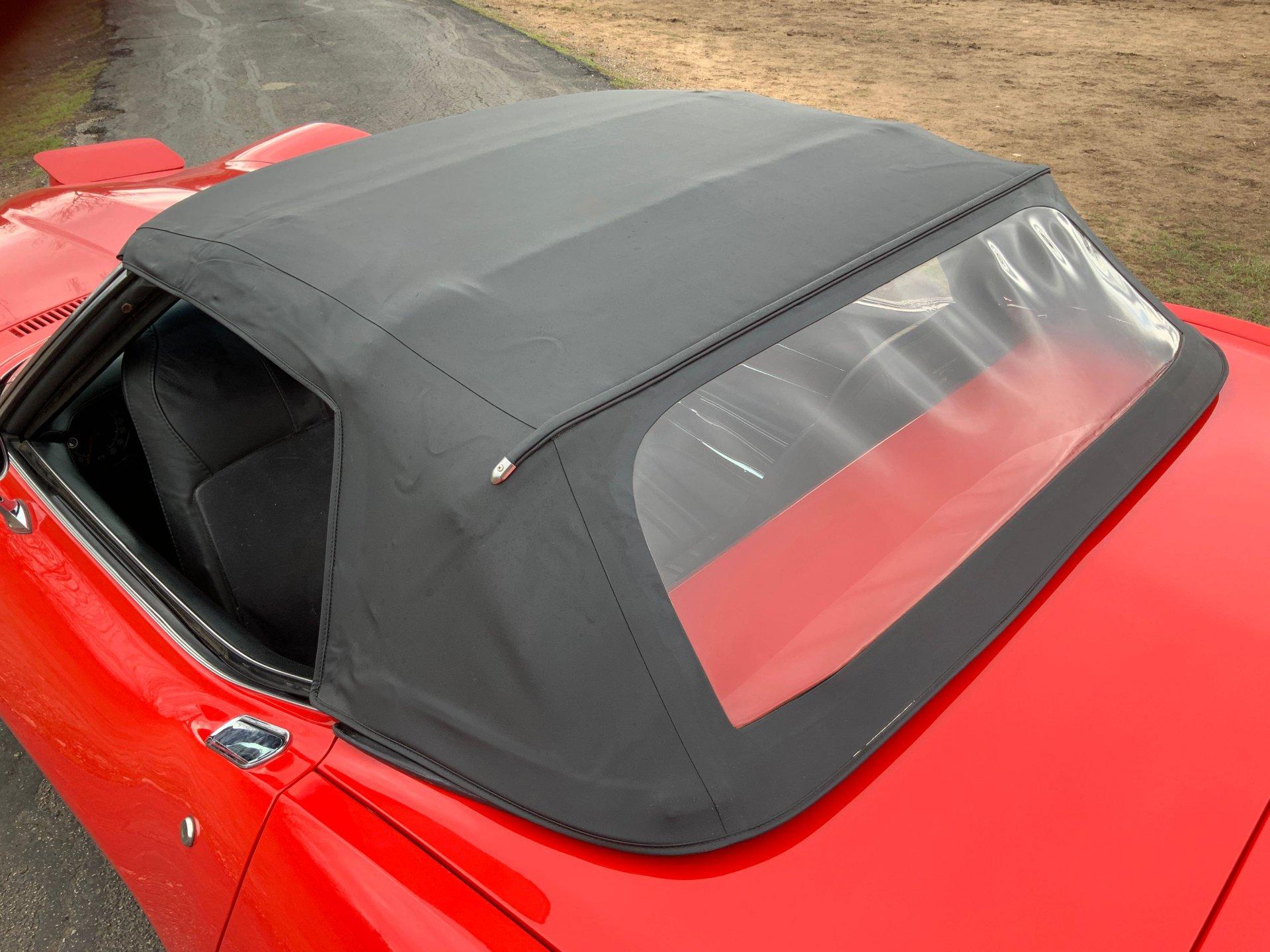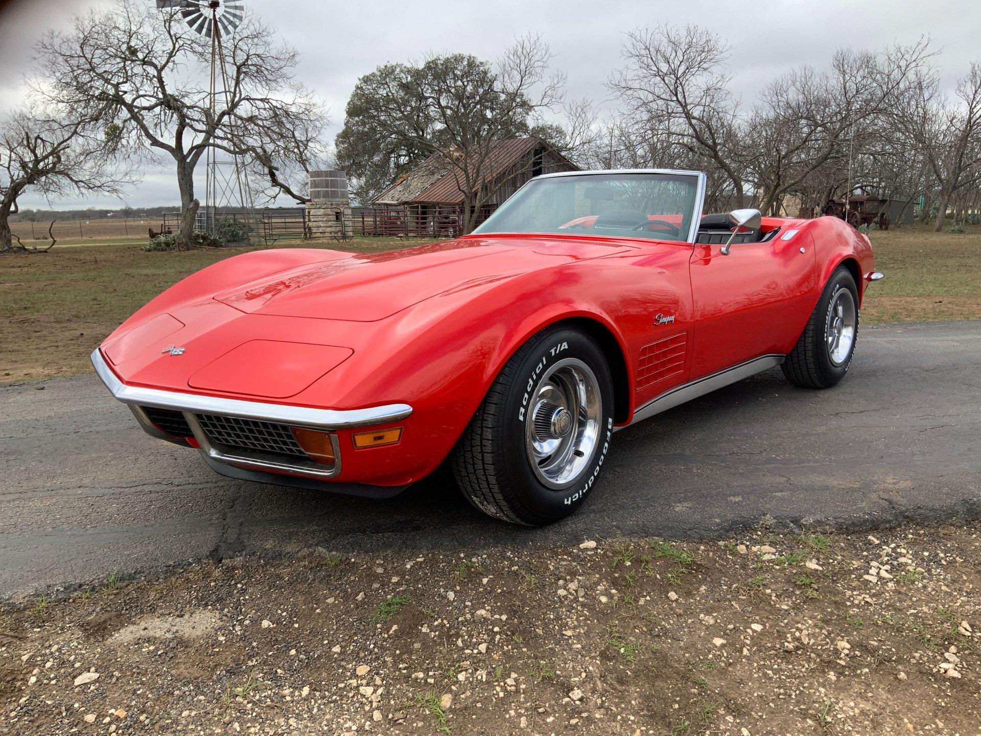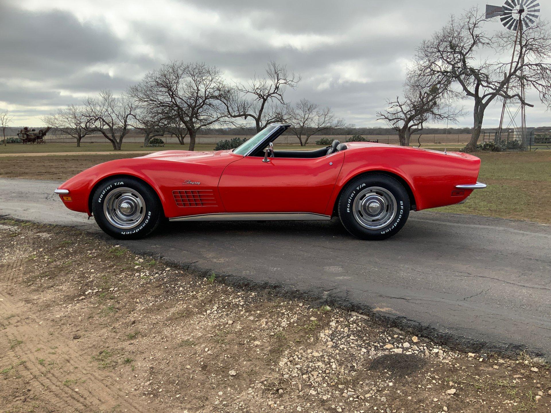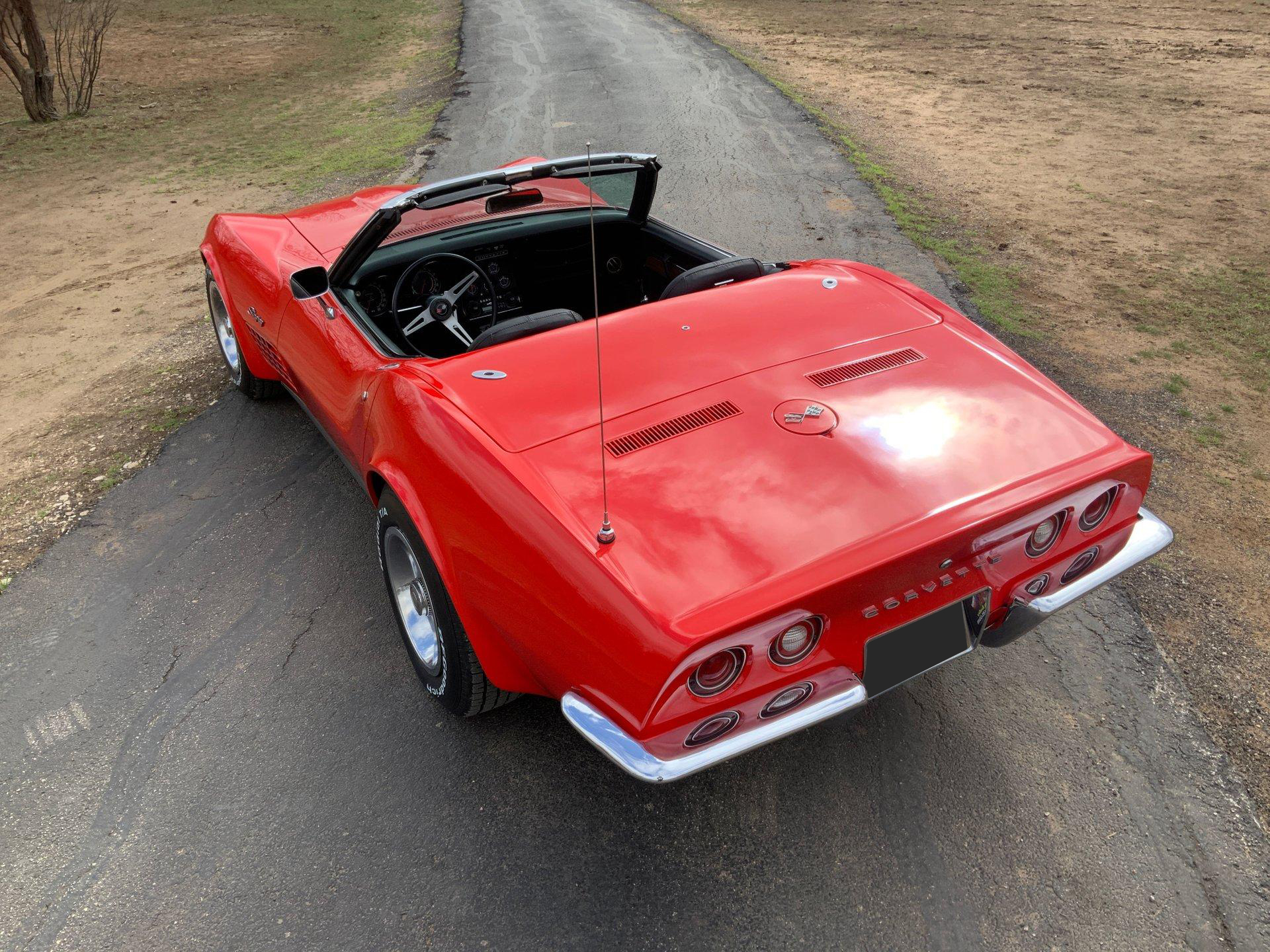 This striking Mille Miglia Red 1972 Corvette Stingray Convertible is a beautiful example of these classic chromed chariots. Lift the hood and you'll find the numbers matching 350 V8 nestled in a well-detailed engine bay. Additional features include power 4-wheel disc brakes, a Muncie 4-speed manual transmission, correct custom interior trim with black leather upholstery (404), auxiliary hardtop, a newer AM/FM/Cassette stereo, and new B.F. Goodrich Radial T/A's (225/70R15) wrapped around classic and correct rally wheels. Our crimson cruiser runs and drives like a Stingray should while attracting more attention than Lady Godiva.