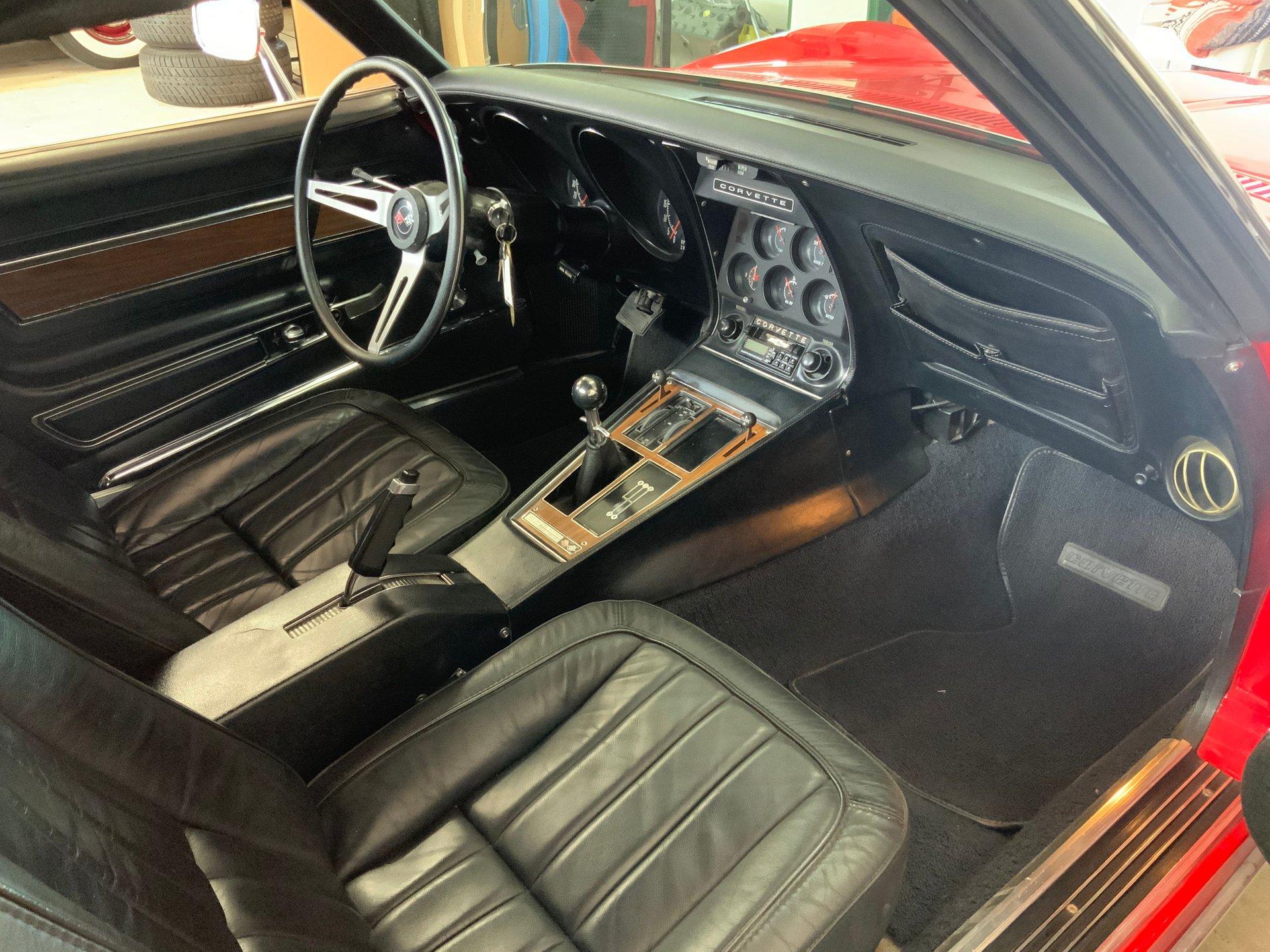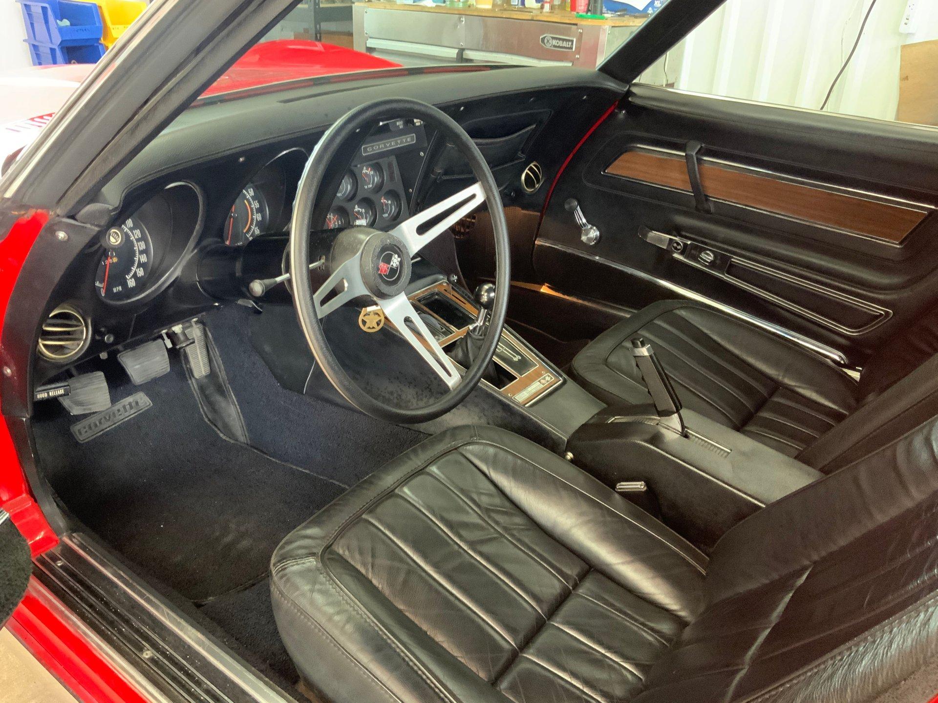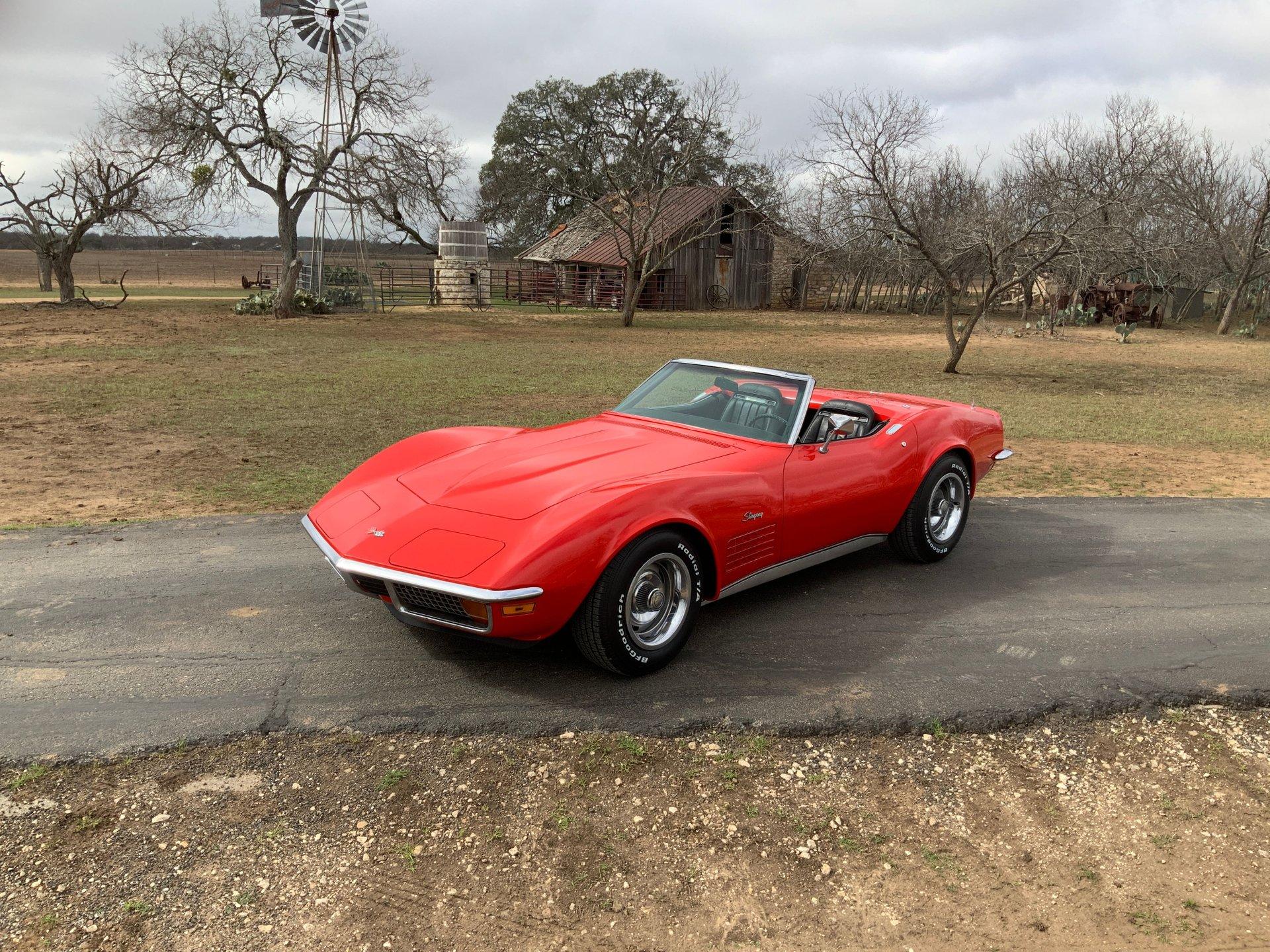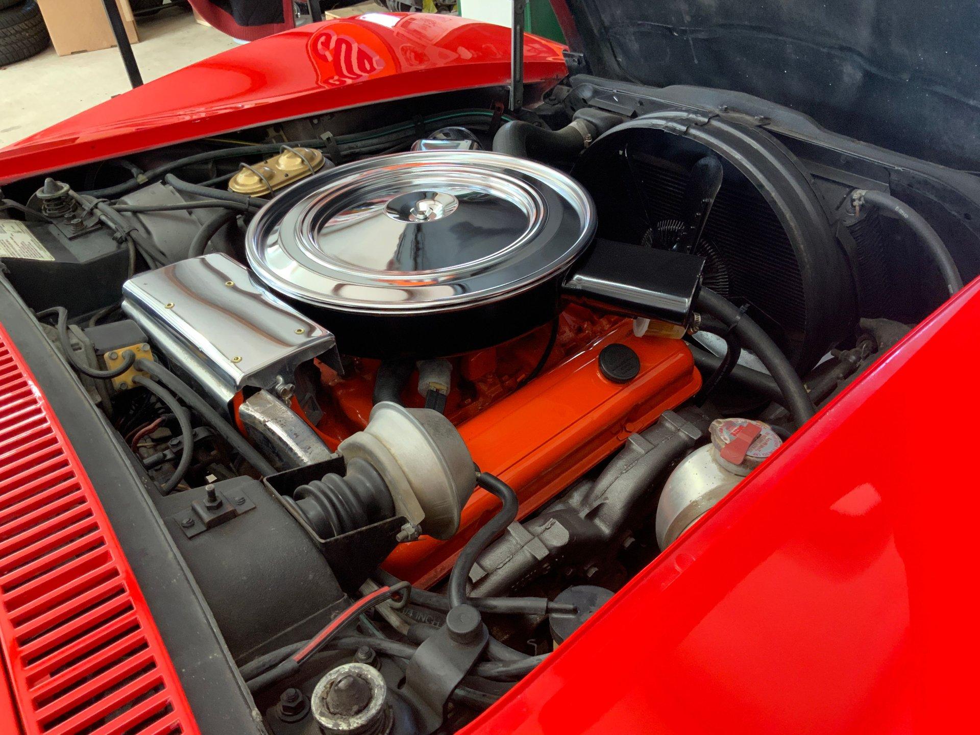 This striking Mille Miglia Red 1972 Corvette Stingray Convertible is a beautiful example of these classic chromed chariots. Lift the hood and you'll find the numbers matching 350 V8 nestled in a well-detailed engine bay. Additional features include power 4-wheel disc brakes, a Muncie 4-speed manual transmission, correct custom interior trim with black leather upholstery (404), auxiliary hardtop, a newer AM/FM/Cassette stereo, and new B.F. Goodrich Radial T/A's (225/70R15) wrapped around classic and correct rally wheels. Our crimson cruiser runs and drives like a Stingray should while attracting more attention than Lady Godiva.