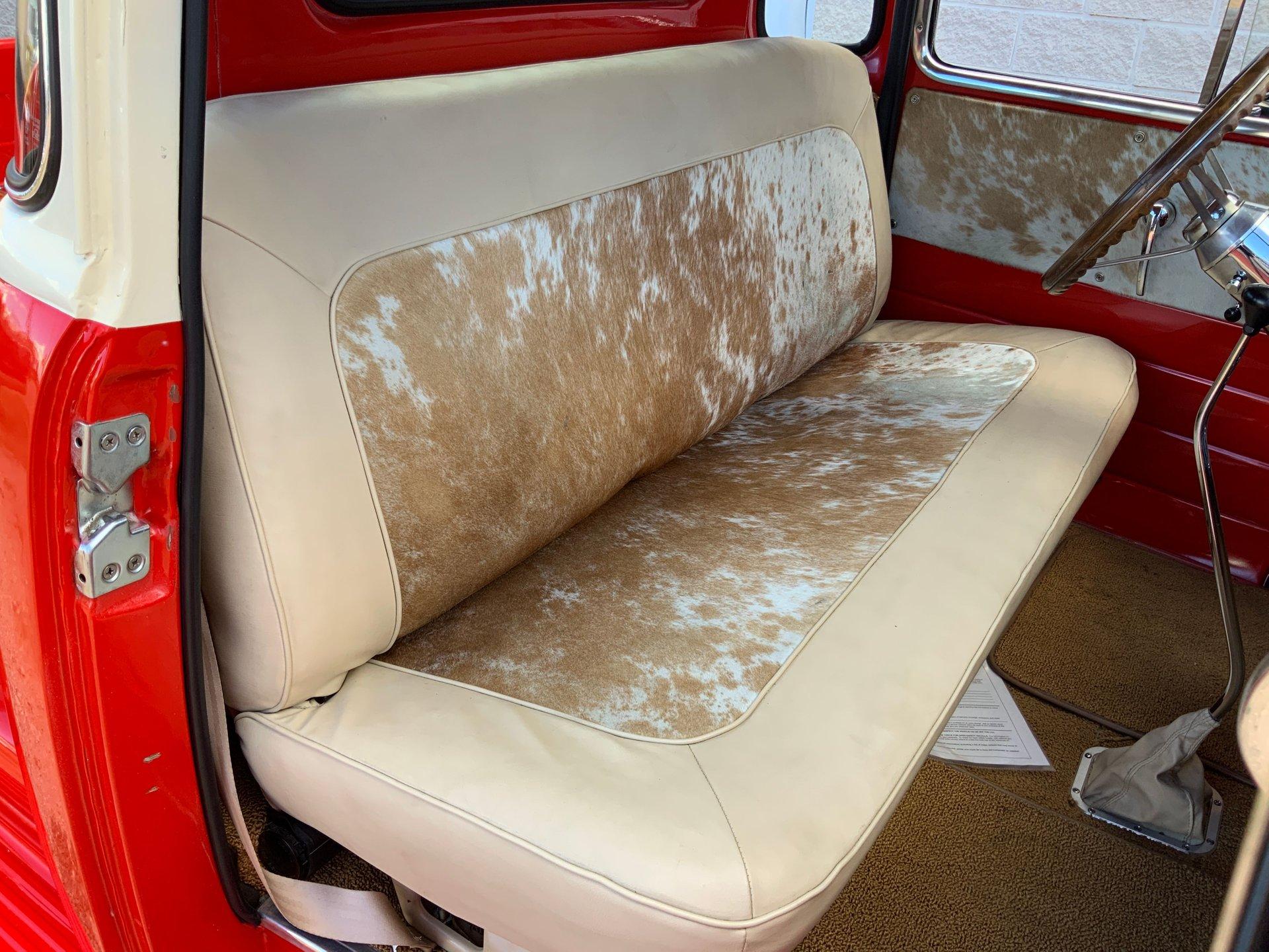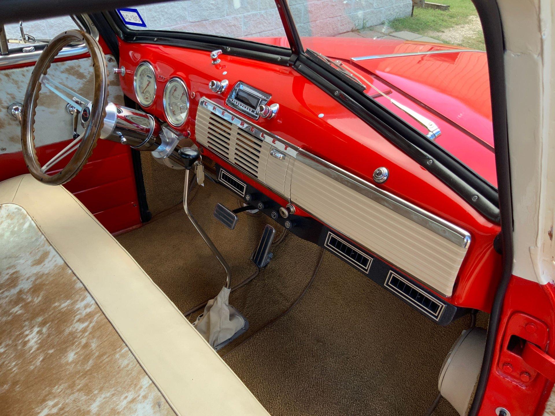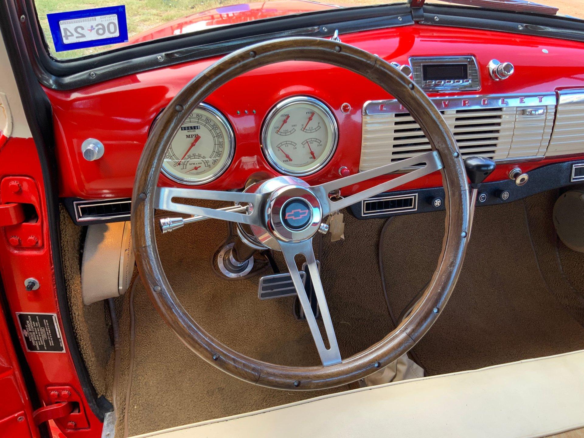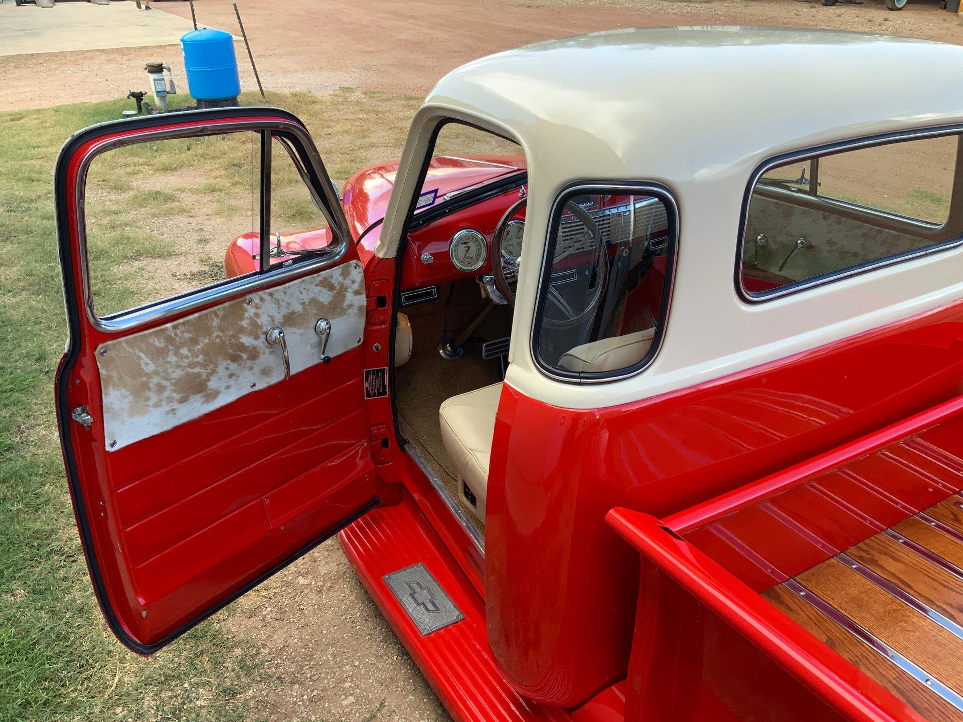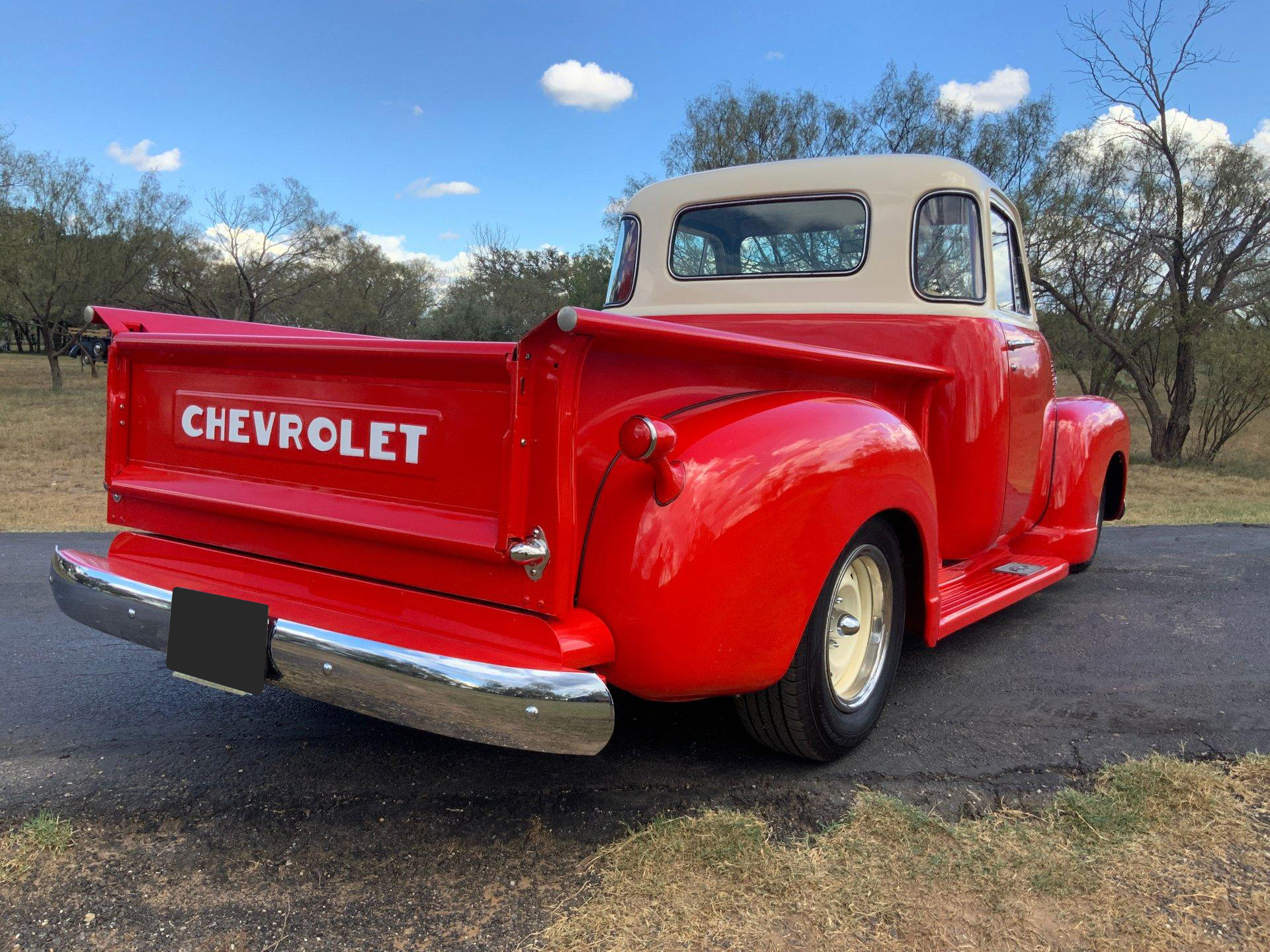This beautiful 1951 Chevrolet 3100 5-Window is an excellent example of a shapely classic that's been upgraded for increased safety, comfort, and performance. Lift the voluptuous hood and you'll be greeted by a fuel injected Chevrolet 350 V8 that's been fortified with EZ-EFI, an Edelbrock AirGap aluminum intake manifold, headers that feed an efficient dual exhaust system, HEI, and an aluminum radiator with custom shroud and electric fan. Additional features include a Mustang II-type front clip, power rack and pinion steering, power 4-wheel disc brakes, air conditioning, 700R4 4-speed automatic transmission with O/D and Lokar shifter, custom interior with cowhide inserts, chrome tilt steering column with wood wheel, Classic Instruments gauges, AM/FM/MP3 stereo, fresh wood bed kit, and 215/70R15 tires wrapped around steel wheels with chrome "bullet" caps and beauty rings. This stunner is beautiful both aesthetically and mechanically and top to bottom, as can clearly be seen in the images provided.