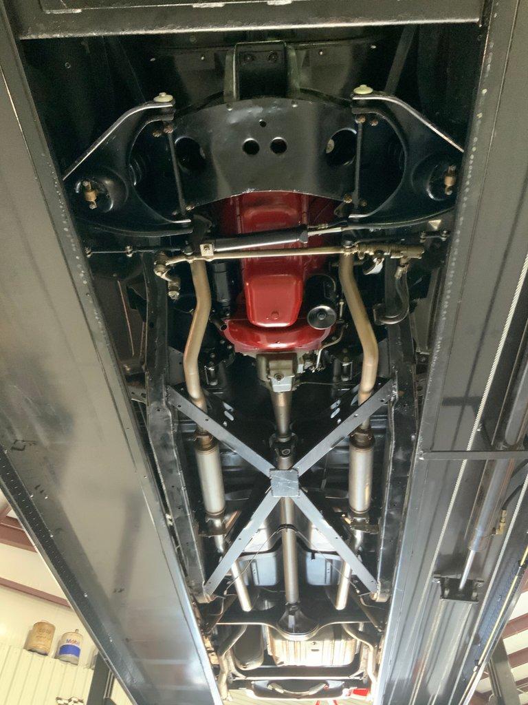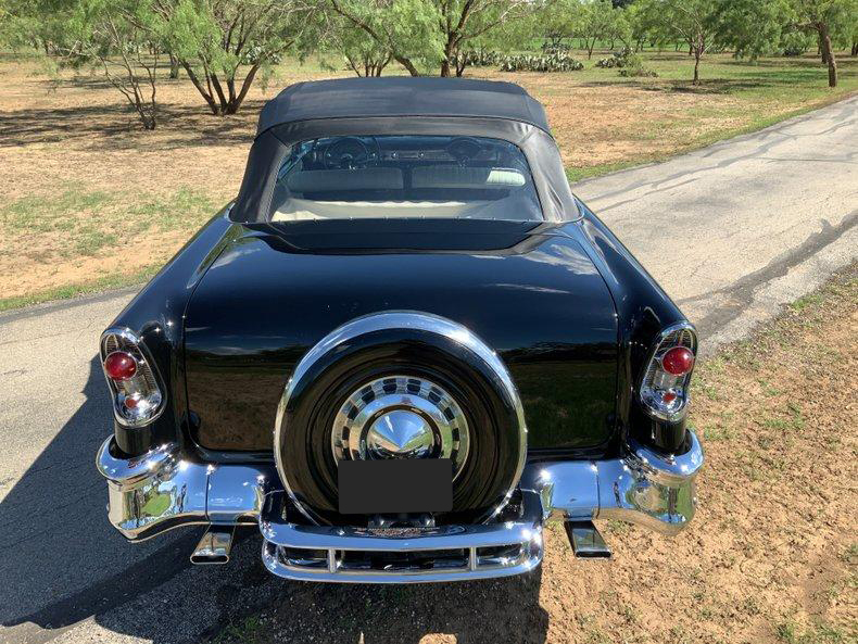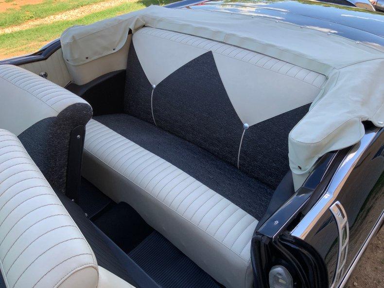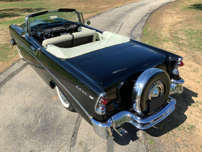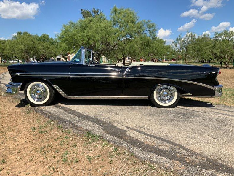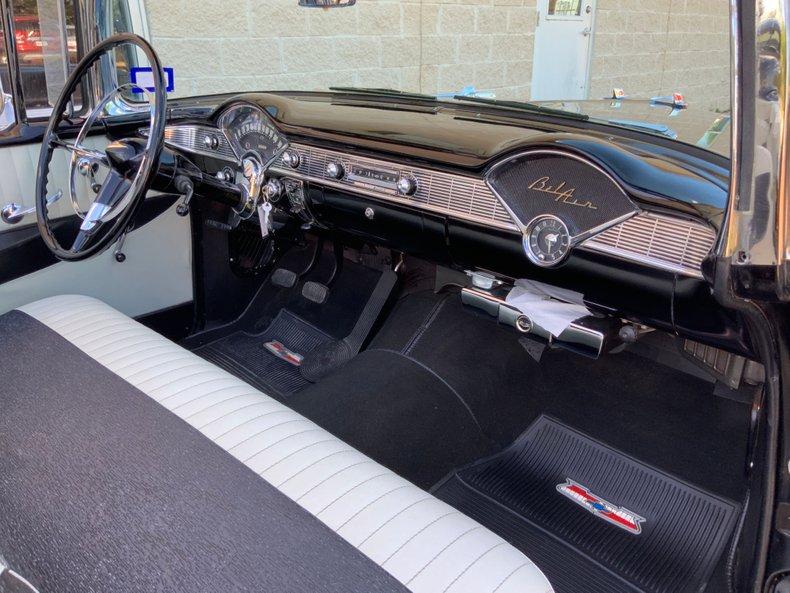 This stunning 1956 Chevrolet Bel Air Convertible (1067DTX) beautifully demonstrates the world-class styling and engineering that made these cars legendary. Beneath the hood is the correct (BCN 3720991) and beautifully restored 265 V8 that's sporting a correct (CN 3731394) Winters foundry aluminum intake manifold with dual Carter 4bbl carburetors and nestled under the imposing "batwing" air cleaner, one of the greatest conversation starters known to man! Additional features include correct Onyx Black paint (687), correct Ivory and Charcoal (602) trim, power steering, power top, 3-speed manual transmission, 3.70 rear gears (AA), dual exhaust, grille guard, Continental kit, fender skirts, and 205/75R15 wide whitewall tires on steel wheels with rare '56 wire wheel covers.